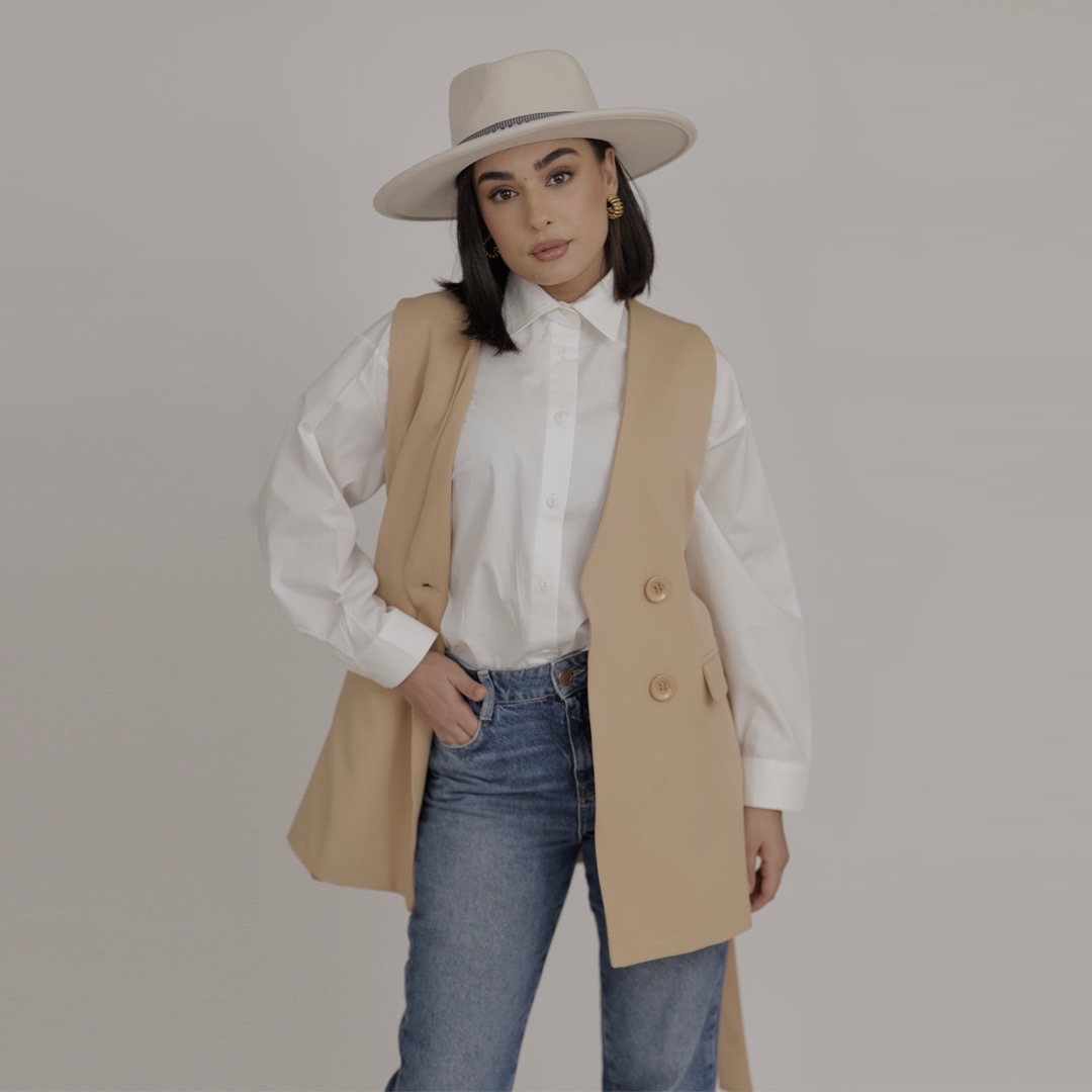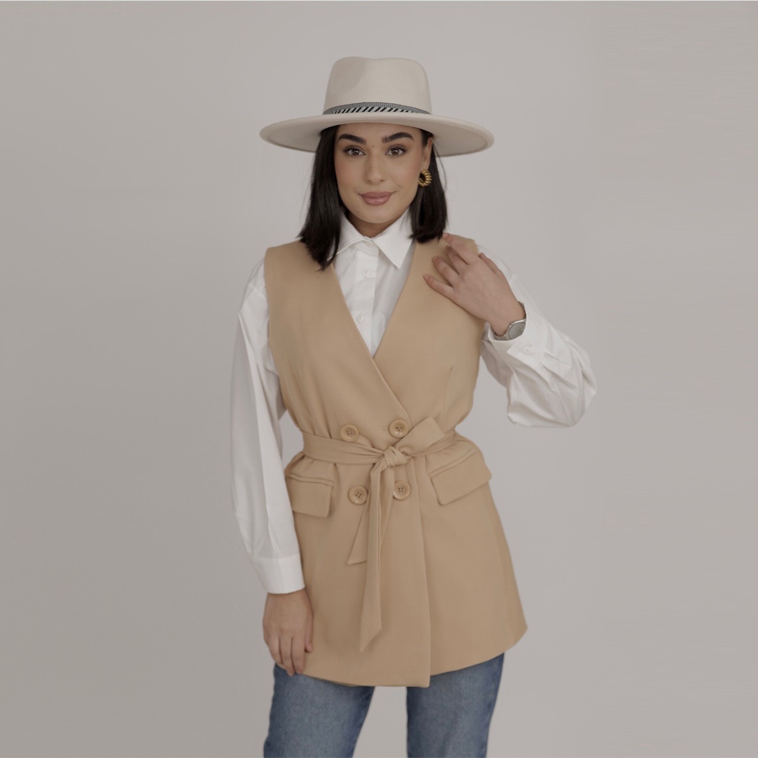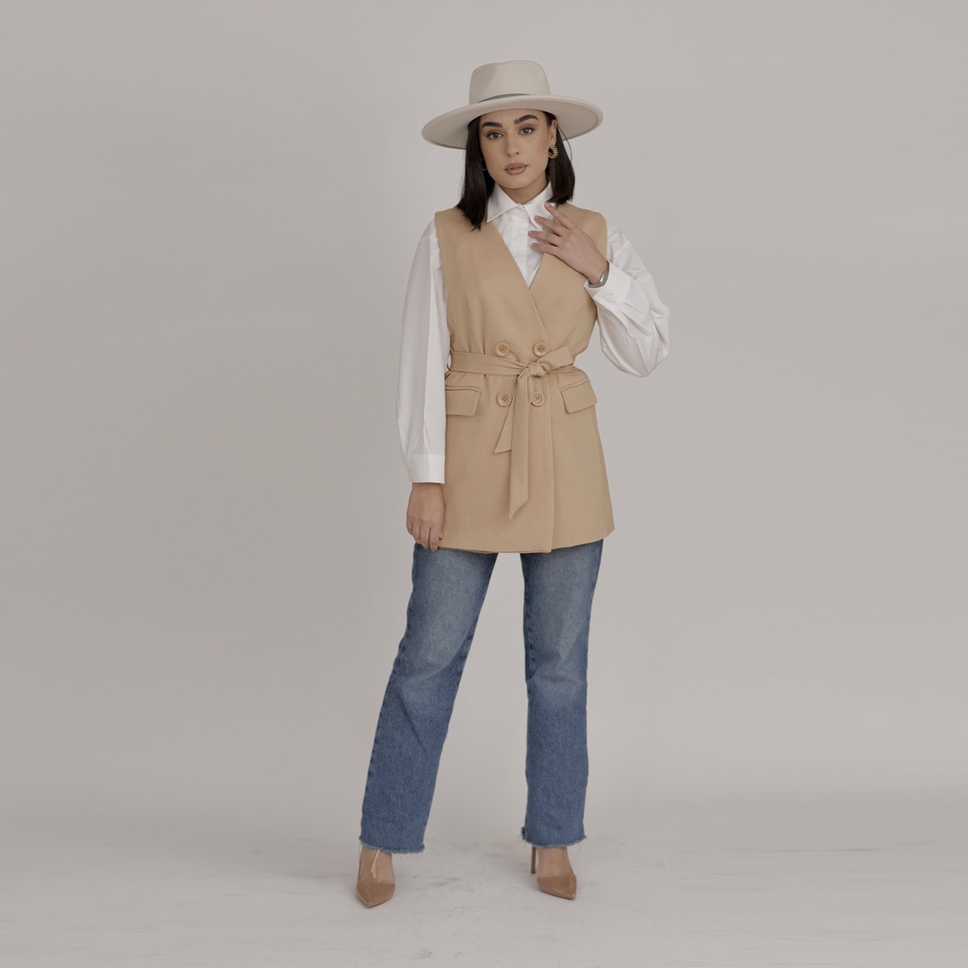 Discover our chic sleeveless blazer, the perfect minimalist layering piece for effortless style. This versatile vest blazer adds a touch of modern sophistication to any outfit. Shop our collection for clean lines and timeless design.